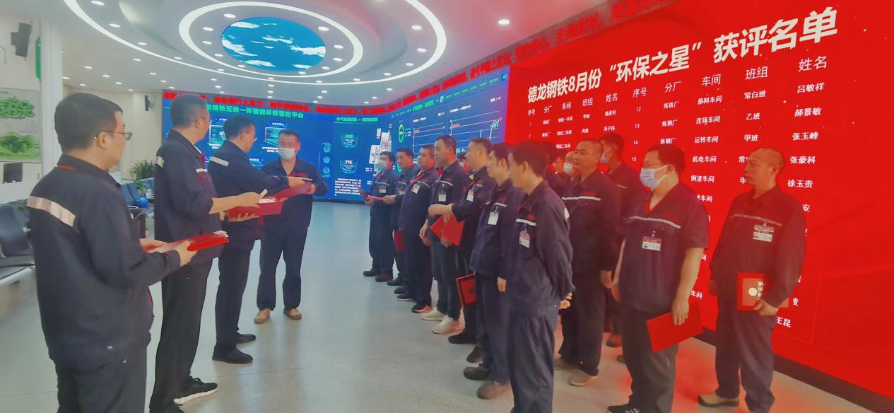 面對當(dāng)前環(huán)保形勢,德龍鋼鐵作為環(huán)保標(biāo)桿企業(yè)勇于擔(dān)當(dāng),緊緊圍繞丁立國董事長提出的“低頭彎腰做環(huán)保,挺胸抬頭說環(huán)保”理念,以“星星之火可以燎原”之勢,立足全國首家在產(chǎn)鋼鐵企業(yè)國家4A級旅游景區(qū)和國家環(huán)保A級企業(yè),通過樹立典型、發(fā)揮基層“環(huán)保衛(wèi)士”模范帶頭作用,持續(xù)開展“環(huán)保之星”評選活動,并每月組織舉行“環(huán)保之星”頒獎儀式,提振士氣、統(tǒng)一思想,全面夯實(shí)基層環(huán)保治理堡壘。