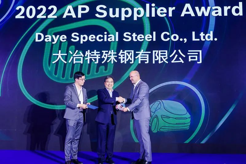 11月14日,中信泰富特鋼集團旗下大冶特殊鋼有限公司黨委書記、總經理蔣喬受邀出席兩年一次的2022博世亞太區供應商大會,博世汽車與智能交通技術亞太區采購副總裁Michael Kemmer為其頒發“博世亞太區優秀供應商獎”獎牌。