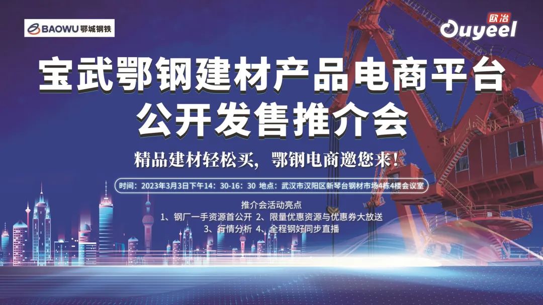 近日,鄂城鋼鐵聯(lián)合歐冶平臺(tái)在武漢市新琴臺(tái)鋼材市場(chǎng)舉辦了2023年寶武鄂鋼建材公開發(fā)售推介會(huì),同時(shí)邀請(qǐng)鋼之家及40余家客戶參會(huì)。推介會(huì)全程在“歐冶鋼好”APP同步直播。