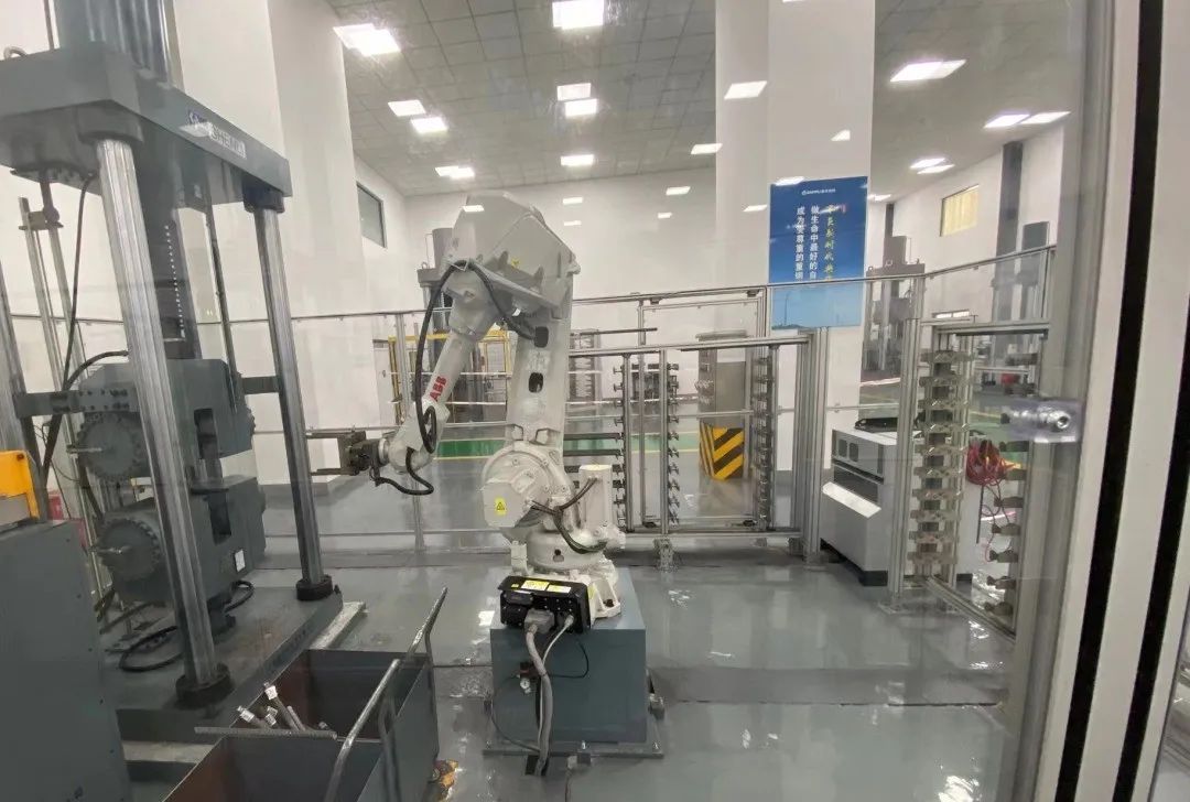 高效運行模式,助力提質增效。工業機器人有效率高、精度高、可靠性好等優勢,在降低人力成本、提高工作效率方面成績顯著,機器人可以24小時無間斷工作,從試樣接收、方案選擇、試樣夾持、斷后試樣回收,數據實時上傳等環節均由機器人實施,實現螺紋鋼力學拉伸試樣的全自動檢測。1臺試驗機每小時可自動檢測試樣15支左右,而且定位準確、效率較高,對提質增效有積極的推動作用。(楊柳)