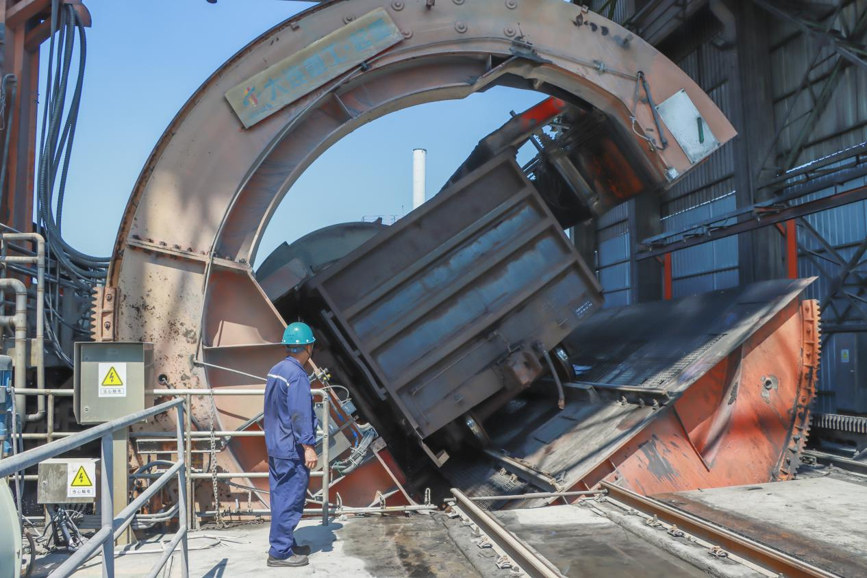 ?10月24日,重慶鋼鐵1號(hào)翻車(chē)機(jī)原料單班卸載127車(chē),連續(xù)4月屢破單班翻卸紀(jì)錄,1號(hào)2號(hào)翻車(chē)機(jī)卸載效率高達(dá)14車(chē)/小時(shí),較行業(yè)翻車(chē)機(jī)卸載效率10-12車(chē)/小時(shí),重慶鋼鐵“單翻折返式翻車(chē)機(jī)”翻車(chē)效率處于先進(jìn)水平。