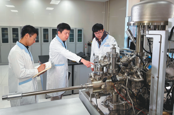 鞍鋼集團海工鋼科研團隊成員正在討論分析新開發的產品顯微組織