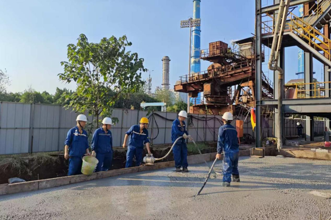 土建組負責現場土建基礎施工。重慶高溫讓施工區域白天地表溫度接近60℃,猶如走在熱鍋上。他們勇敢直面挑戰,拉線劃線,精準定點位、定標高,一絲不茍。綁鋼筋時全神貫注,確保牢固程度,澆水泥基礎時小心翼翼,如雕琢藝術品,完工后認真保養,確保工程耐久性。目前,土建組已自主實施300平方皮帶機基礎澆筑及地面硬化。
