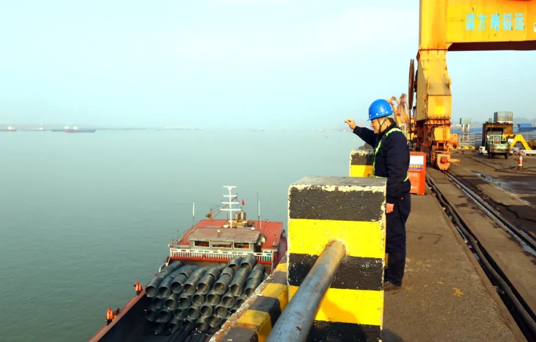 而在該公司碼頭作業(yè)區(qū),只見江面千帆競(jìng)發(fā),碼頭一派繁忙景象。物流運(yùn)輸部3號(hào)碼頭值班長(zhǎng)劉星一邊向船主們賀新年,一邊忙著協(xié)調(diào)產(chǎn)品發(fā)運(yùn),并對(duì)各項(xiàng)設(shè)備展開安全巡查,保障節(jié)日期間碼頭運(yùn)輸有序、物流通道暢通,各項(xiàng)工作順利開展。