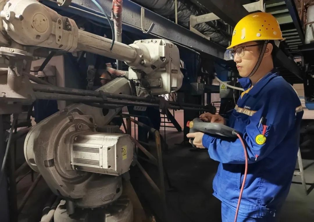 機(jī)器人維護(hù)曾因技術(shù)門檻高、長期依賴外部支撐,成為車間自動化運(yùn)維回歸的最大瓶頸。面對這一挑戰(zhàn),車間電氣技術(shù)團(tuán)隊(duì)以“不破樓蘭終不還”的韌勁,通過海量資料研讀、模擬實(shí)操演練、行業(yè)專家遠(yuǎn)程交流等多種方式,硬是啃下了這塊“硬骨頭”。短短數(shù)月,團(tuán)隊(duì)便掌握了機(jī)器人異常診斷、示教器精準(zhǔn)操控、位置標(biāo)定校準(zhǔn)、軌跡動態(tài)調(diào)整等核心技能,實(shí)現(xiàn)了日常運(yùn)維100%自主化,徹底告別了“等靠要”的被動局面。