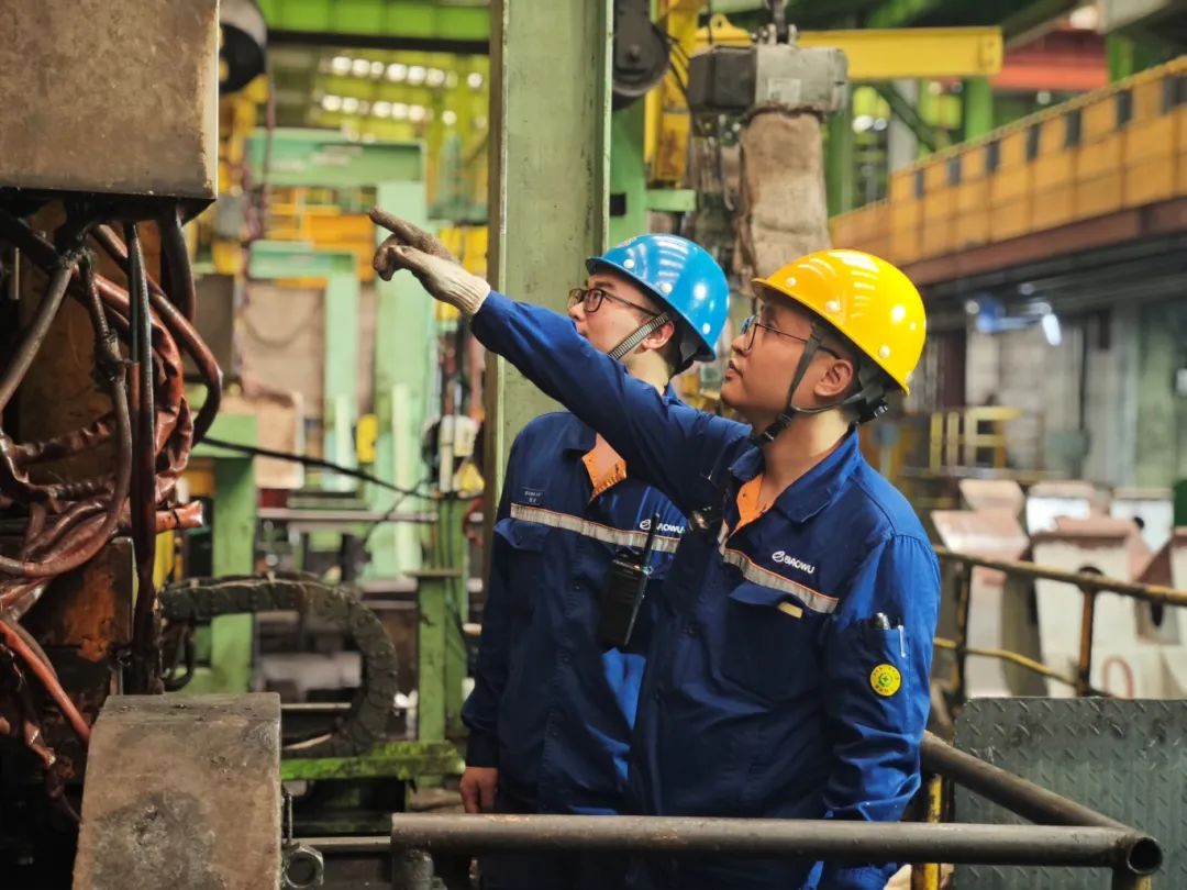 借助設備智慧管理系統(tǒng)(IEQMS)擰緊全流程設備管控“總開關”,深入推動全員“操檢維調"落地見效,搭建了現(xiàn)場操作崗基礎巡檢、設備維護崗運行點檢、專業(yè)技術崗精密診斷的現(xiàn)場設備管理機制。5月熱卷設備團隊通過精密點檢,成功預判工作輥冷卻水集管端蓋脫落等重大隱患,實現(xiàn)非計劃停機時間創(chuàng)歷史新低。此外通過不斷的現(xiàn)場跟蹤調試,實現(xiàn)熱卷箱同步程序"速度判斷-條件連鎖-擺鋼執(zhí)行"的“智慧升級”,單次節(jié)奏有效提升23秒,為產線效率提升再添動能。