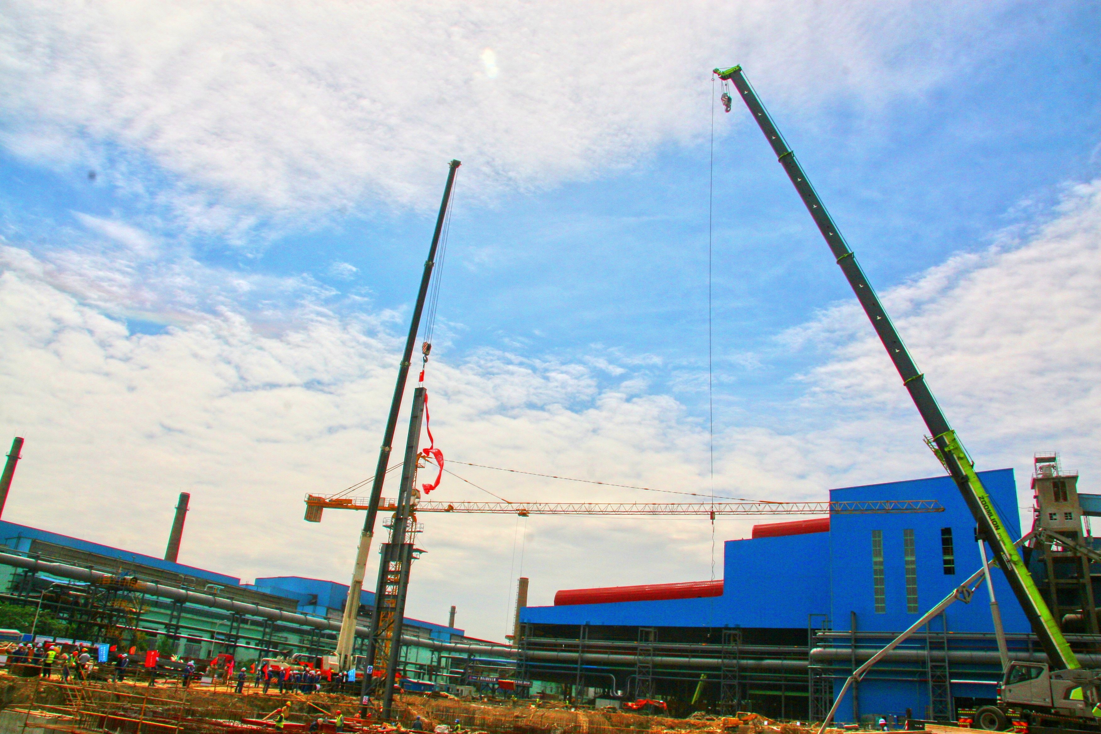 國內首條重型H型鋼生產線吊裝第一根廠房立柱