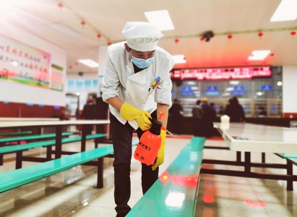 在春節(jié)前疫情還未大面積蔓延時,方大九鋼就已做好準備了,用庫存的消毒藥水進行了最初的防控。在員工食堂、宿舍、辦公樓等重點防控區(qū)域,后勤部門的員工背著消毒設備反復噴灑消毒藥水,及時清理各類垃圾。在企業(yè)機關以及廠區(qū)各大門外,由企業(yè)保衛(wèi)部門組織的測體溫、登記、詢問等工作正有條不紊地進行著。