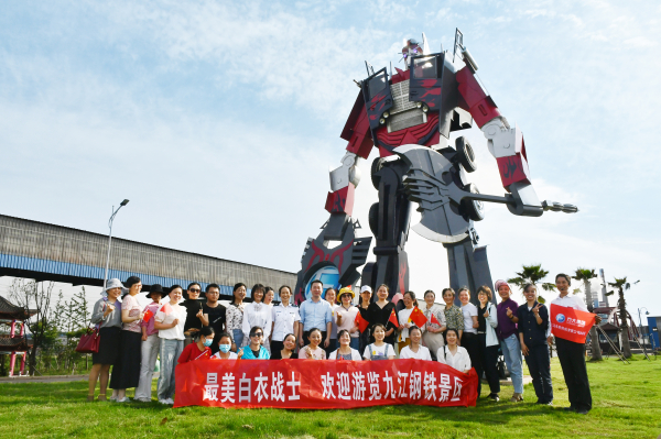 員工手指的方向,正是一座身穿鎧甲、威風(fēng)凜凜、霸氣十足的鋼鐵雕塑“長(zhǎng)江守護(hù)俠”。該鋼鐵雕塑高9米、寬8米,由該公司員工自主設(shè)計(jì),利用廢舊鋼板、邊角料、舊輪胎等物資制作完成,寓意守護(hù)長(zhǎng)江一岸翠綠與一江春水,是方大九鋼3A景區(qū)的網(wǎng)紅景點(diǎn)。