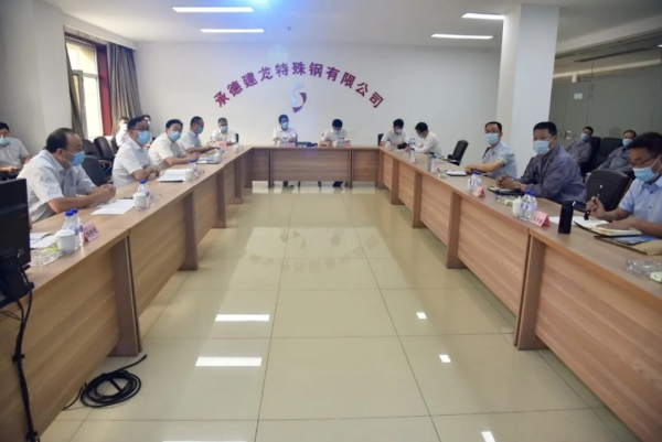 6月16日,根據(jù)陜鋼集團(tuán)對(duì)標(biāo)“石普方、建南三”工作整體安排,集團(tuán)公司黨委副書(shū)記、工會(huì)負(fù)責(zé)人武軍強(qiáng)帶領(lǐng)第四對(duì)標(biāo)組一行到承德建龍?zhí)厥怃撚邢薰揪忘h建文化、經(jīng)營(yíng)管理、生產(chǎn)組織等開(kāi)展對(duì)標(biāo)交流,集團(tuán)公司副總經(jīng)理宗衛(wèi)東、總經(jīng)理助理杜東興、總經(jīng)濟(jì)師王紅章及機(jī)關(guān)相關(guān)部門(mén)、各子公司負(fù)責(zé)人等參加對(duì)標(biāo)交流。承德建龍黨委書(shū)記、執(zhí)行董事、總經(jīng)理王雪原,常務(wù)副總經(jīng)理王大鵬,副總經(jīng)理鞏飛及有關(guān)處室、分廠負(fù)責(zé)人一同交流。