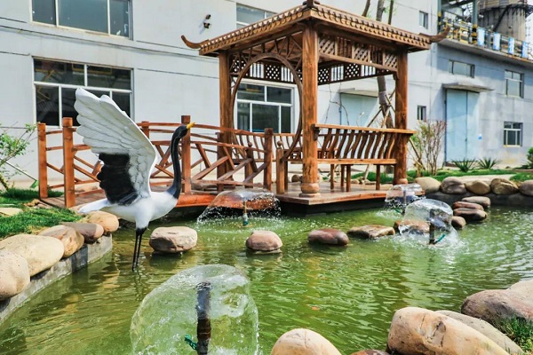 為了進一步美化水處理中心環境,廠長劉入周提出擴大廠區內綠植面積,將廠區里預留出來的土地,分區片劃分給每個工段或個人,要求各自發揮,打造樹草結合、層次交錯、季節交替的成片景觀型綠地數個,形態各異的創意模型、景觀小品林立廠中,增添了“剛柔并濟”的可視化效果。劉廠長并以勞動者的身份,身體力行,親自動手,在自己分得的那塊土地上種花植草。通過“每人一分責任田”活動,既增強了員工的責任心,又提高了員工的凝聚力和創造力。
