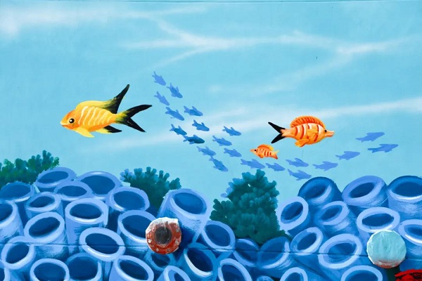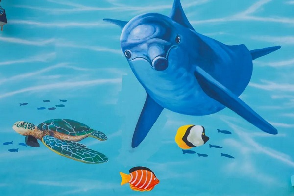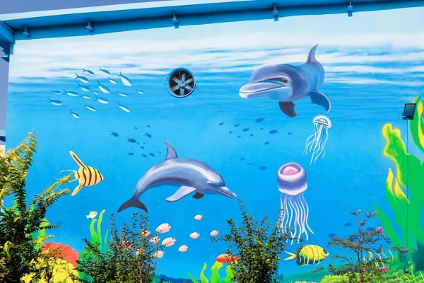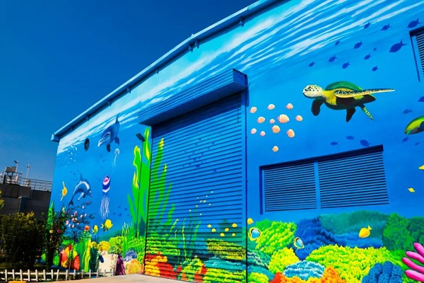 水處理中心員工們以“海底世界”為主題,在墻上畫出了各種自己喜歡的海洋生物,有海草,金魚,鯊魚,藍鯨等等,開會的辦公室被大家打趣稱為“海景房”。雖然夏日炎炎,但在這“海底世界”工作,感覺很涼快啊!有木有?有木有?