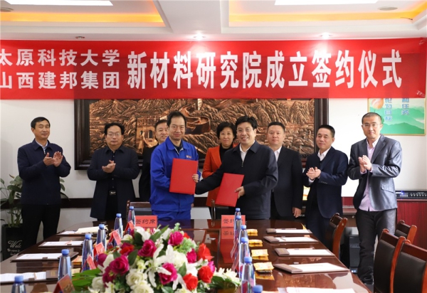 10月15日上午,山西建邦集團(tuán)與太原科技大學(xué)新材料研究院成立簽約儀式在通才辦公樓二樓視頻會(huì)議室成功舉辦,并進(jìn)行揭牌。太原科技大學(xué)黨委副書記、校長衛(wèi)英慧,材料學(xué)院院長陳慧琴、校長辦公室主任丁慶偉、材料學(xué)院副院長劉光明、冶金教研室主任任志峰與曲沃縣委書記楊保春、人大主任費(fèi)向前、政協(xié)副主席孟海河、建邦集團(tuán)公司總經(jīng)理張銳、副總經(jīng)理兼鑄造公司總經(jīng)理劉力強(qiáng)、黨委書記李永建、副總經(jīng)理常崇斌、張璽成、武會(huì)卿參加儀式。簽約儀式由集團(tuán)公司黨委書記李永建主持。