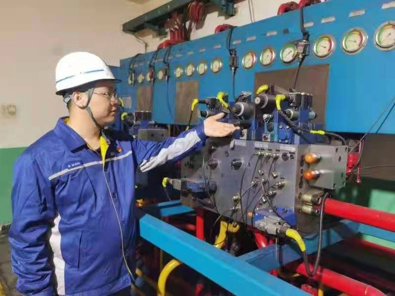 圖為肖峰正在對高爐爐前液壓站設備漏油情況進行點檢。史佳佳攝