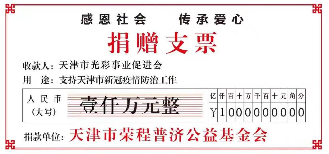 榮程集團(tuán)副總裁、榮程鋼鐵集團(tuán)董事長、榮程集團(tuán)榮程普濟(jì)公益基金會理事長張君婷表示:作為扎根津南、立足天津的企業(yè),榮程集團(tuán)將在董事會主席張榮華的帶領(lǐng)下將疫情當(dāng)命令、視防控為責(zé)任,在自身疫情防控工作抓實(shí)抓好的同時(shí),理當(dāng)積極承擔(dān)社會責(zé)任,助力天津早日戰(zhàn)勝疫情!