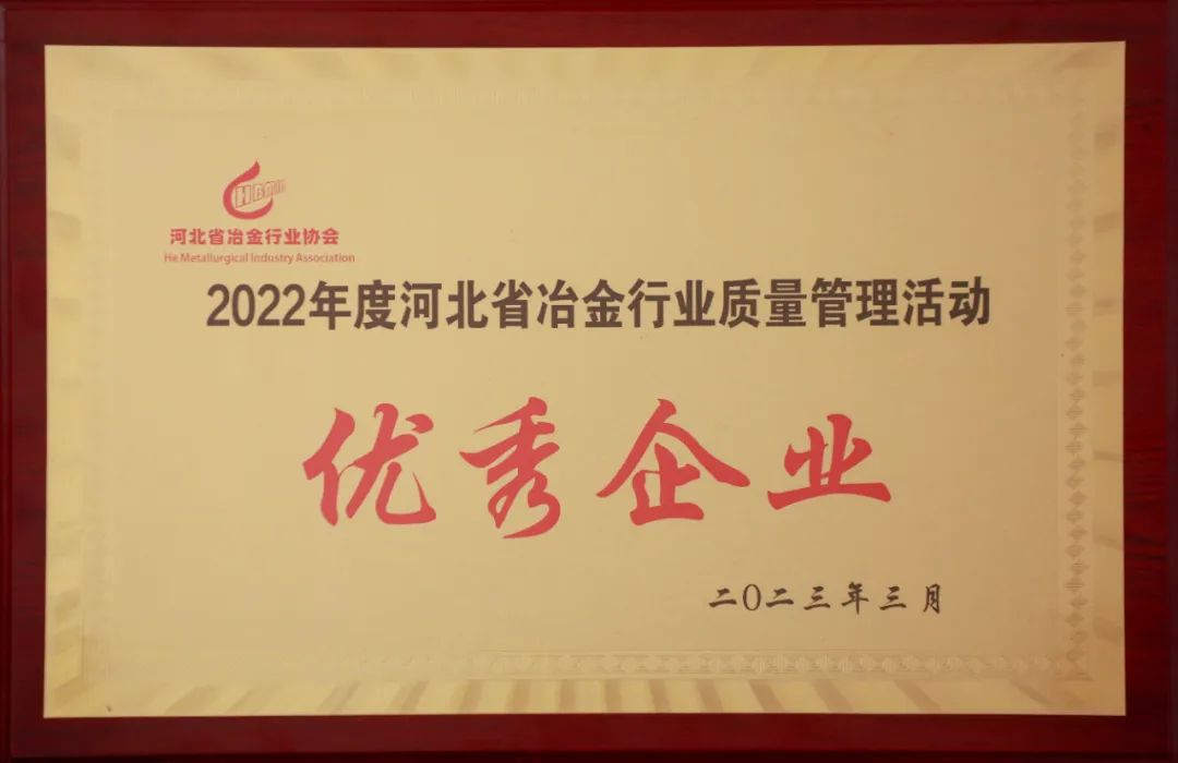 企業榮譽丨金鼎鋼鐵集團榮獲“2022年度河北省冶金行業質量管理活動優秀企業”榮譽稱號