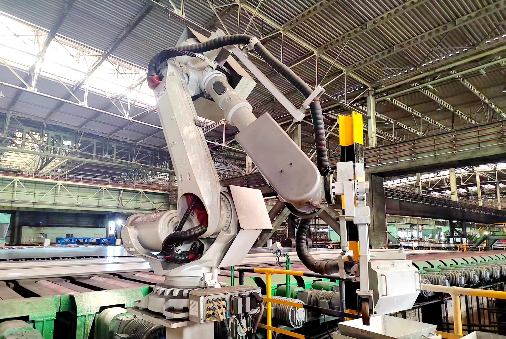 熱噴印機完成升級改造后,采用了工業機器人,可實現高溫鋼板的在線自動標識,標識后下線堆冷,實現全自動化控制,無需人工進行標識,提高了生產的效率,并確保了每件鋼板的信息準確無誤,降低了員工的勞動強度,有效避免了相應的安全隱患。(陳睿)