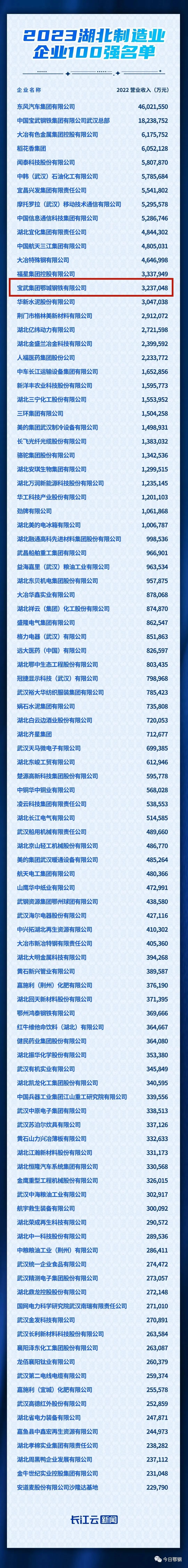 2023湖北企業“三項100強”榜單昨日發布,鄂城鋼鐵上榜“2023湖北企業100強、湖北制造業企業100強”名單。