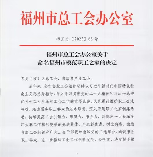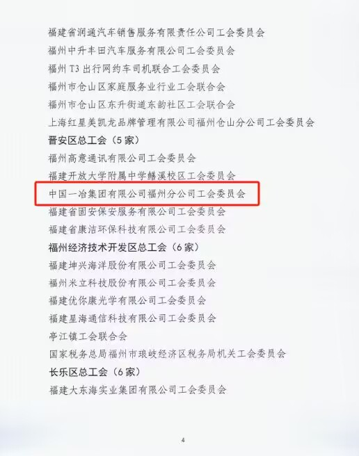 12月6日,中國(guó)一冶福州公司工會(huì)首次被授予“福州市模范職工之家”稱號(hào)。