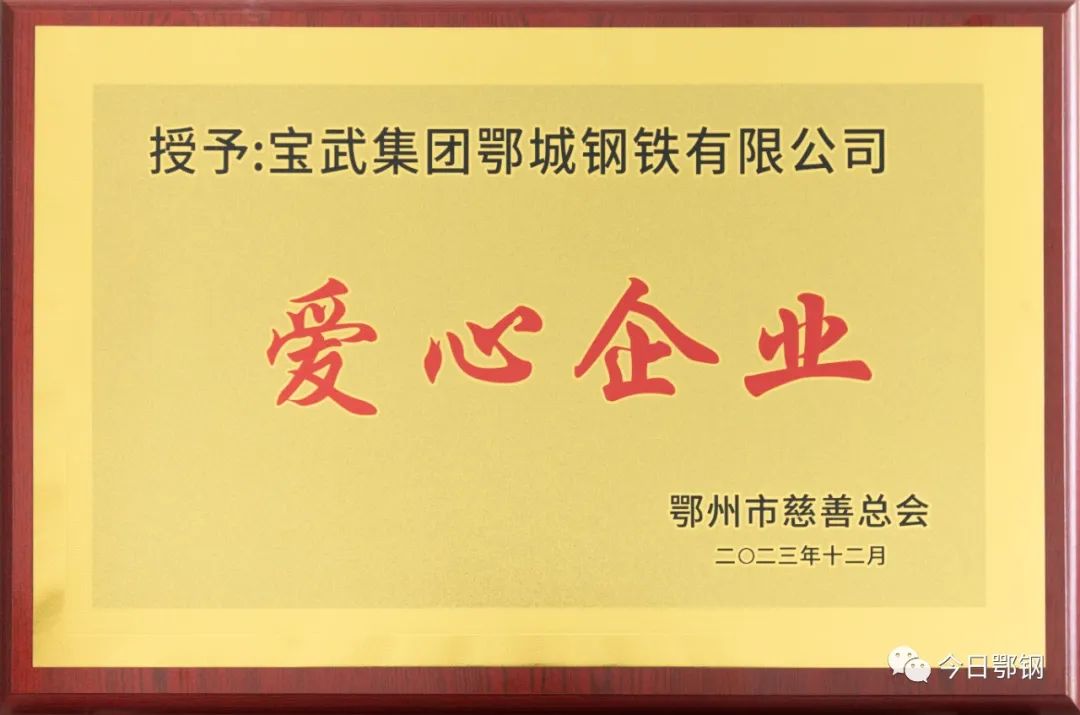 日前,該公司榮獲鄂州市“愛心企業(yè)”榮譽。