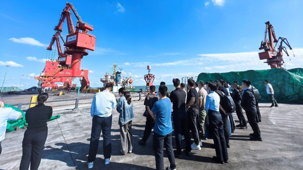 下午,在山鋼碼頭董事長邱玉生的引導(dǎo)下,大家參觀了山鋼日照成品碼頭與原料碼頭,深入了解港口業(yè)務(wù)流程。在成品碼頭,邱董事長首先介紹了山鋼日照成品碼頭的概況及建設(shè)歷程。據(jù)了解,該碼頭擁有2個4萬噸級和2個1萬噸級鋼材產(chǎn)成品泊位,是山鋼日照產(chǎn)品內(nèi)外運的重要樞紐。