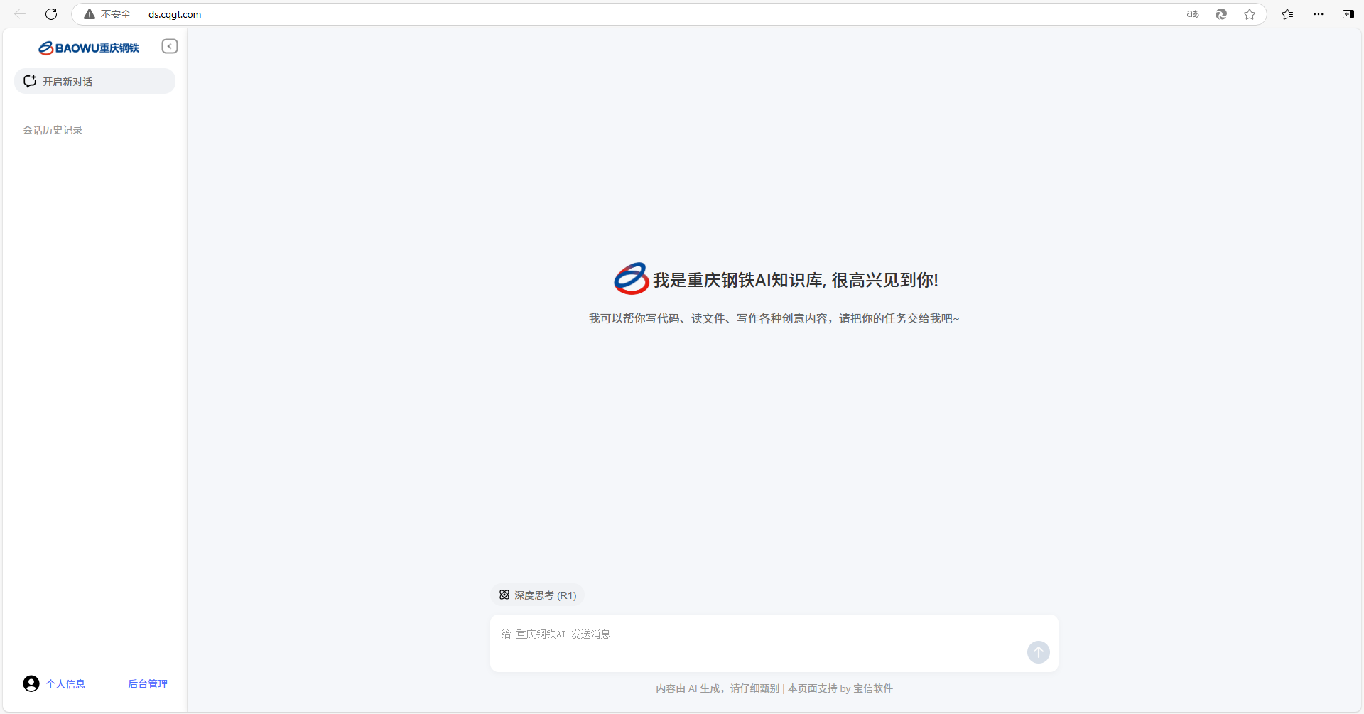 中國寶武“2526”工程的啟動,吹響了邁向智能化時代的奮斗號角。DeepSeek不僅是一項技術,更是一種全新的思維方式。重慶鋼鐵以時不我待的緊迫感,推進AI鋼鐵的運用,為企業數字化轉型注入強勁動能。目前,自主完成DeepSeek-R1-70B大模型本地化部署,重慶鋼鐵AI知識庫已正式投入公測運行,標志著重慶鋼鐵從信息化時代向智能化時代邁出了堅定的一步。