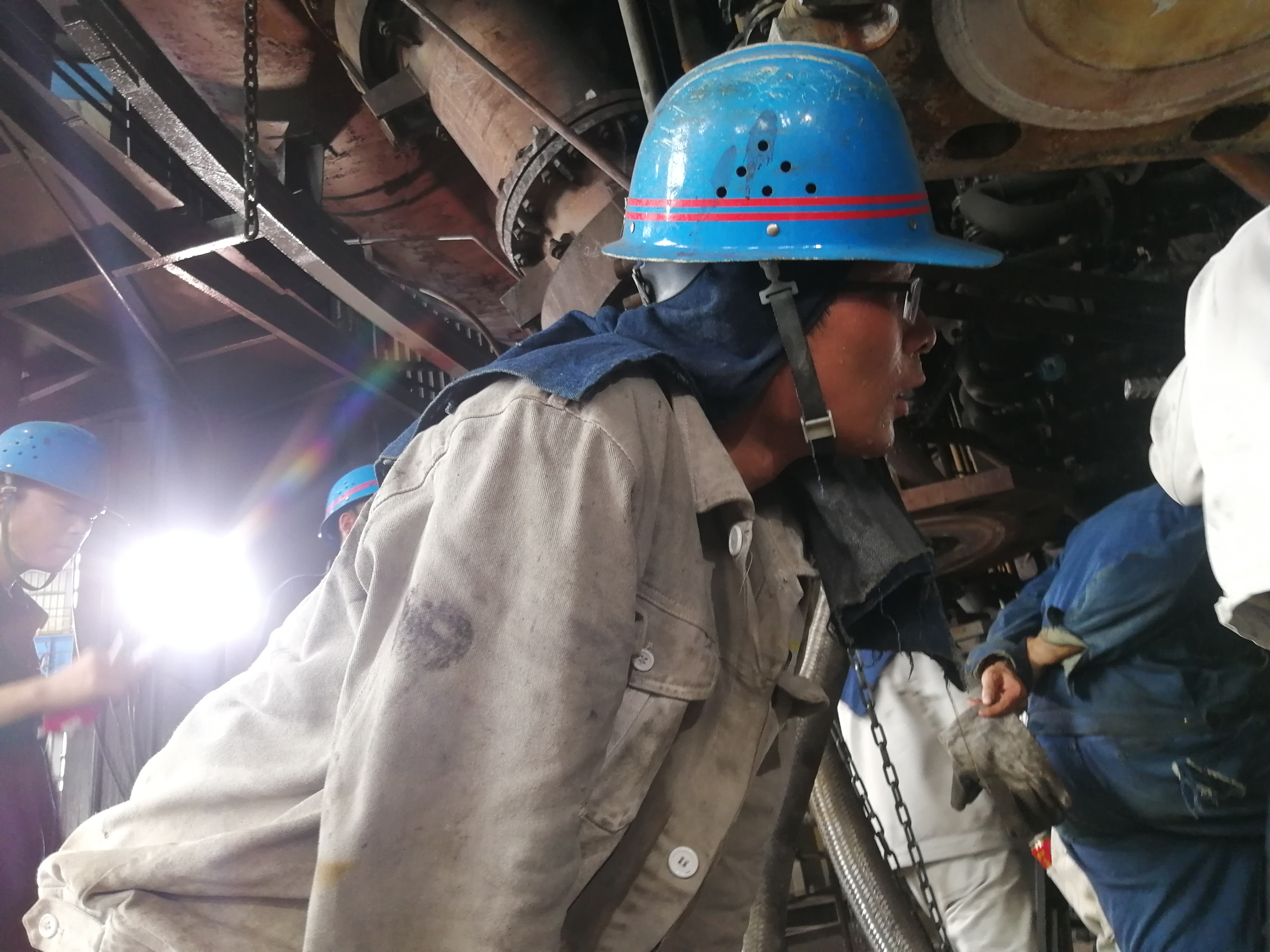 小張嘴里的“曉輝”,是一個沉穩厚實的90后的小伙。只見他身子一縮將頭探進風口套里查看究竟:“快!釬子給我,渣里面結了殘鐵……”風口套溫度直達50度,當他探出頭的那一刻,汗水像流水般從鼻翼清晰紋路掉落,衣服也早已全部濕透,但看到他那雙堅定的眼神時,筆者不由得為之撼動。誰說90后只會享受安逸,他正在分秒必爭,向前沖鋒!