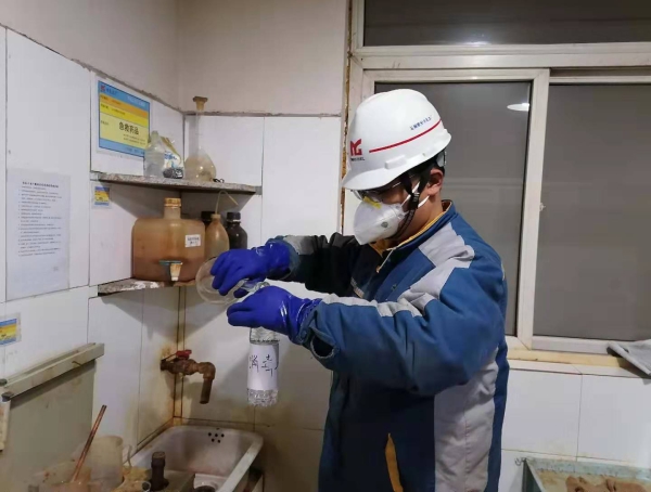 每天早上,杜永利早早趕到生產現(xiàn)場,按比例配置并裝好一瓶瓶消毒液,分送到分廠下屬酸軋、酸洗、酸再生作業(yè)區(qū)負責人手上,詳細指導消毒噴射作業(yè)。等一圈跑下來,已經臨近中午,杜永利再匆匆趕回酸再生現(xiàn)場,組織協(xié)調疫情期間氧化鐵粉、濾餅等外發(fā),保證外發(fā)物流通道順暢。同時檢查外來進廠人員是否佩戴口罩,體溫是否正常,出入登記是否完整。中午隨便吃了點食堂打來的飯菜后,又趕往利民協(xié)力相關方,在室外對協(xié)力人員舉行防疫宣貫,同時檢查相關方防疫工作落實執(zhí)行情況。