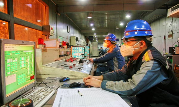 圖為2月11日下午煉鋼工人正通過電腦MMI畫面精心操作煉鋼的情景。