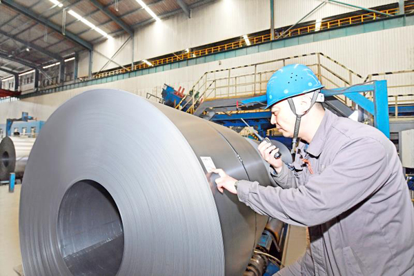 規格銜接需要精準平穩過渡,才能確保產品力學性能和表面質量滿足客戶要求。3.0毫米帶鋼即將進入退火爐,張煥宇立即著手準備調節煤氣、空氣閥的開度和全線張力。10分鐘后,焊縫自鋅鍋中升騰而出,后處理工序的操作工已在現場就位,根據板形對拉矯機、鈍化涂機進行微調。握緊“接力棒”,產線各工序“隔空”緊密配合,順利跑贏了制管用鋼訂單“團體賽”。