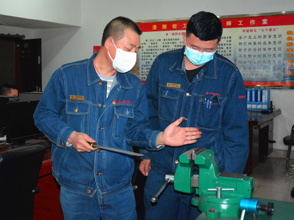 “師父對徒弟和工作室成員的要求一直都很嚴格,要我們做任何事情都必須精益求精。”正在工作室練習銼配工件的付朋說。