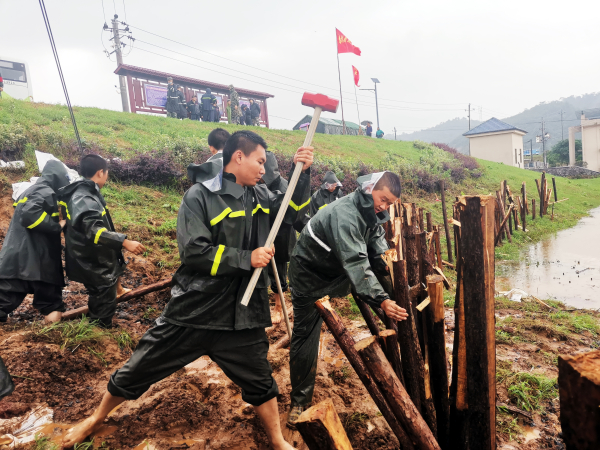 身為軍訓教官的他不改軍人作風,總是對學員們諄諄教誨,大伙總是親切稱呼他為“老趙”。而作為湖口縣民兵應急連防汛抗洪排排長的他,更是充分展現出自己的“硬漢”本色。2020年7月份進入主汛期后,長江水位持續增高,一度逼近歷史最高水位,湖口汛情告急。7 月6 日上午,趙遠接到上級指令,“工業園區沿江大道金元萊低洼路段告急,縣防汛抗旱指揮部要求九鋼速派40 名搶險隊員參與支援修筑子壩任務,人員務必在12:30 到位!”險情就是命令,必須無條件完成政府安排的防汛指令!趙遠立即組織應急搶險人員集合,領用雨衣、鐵鍬等防汛物資后緊急奔赴搶險地點。裝沙袋、攤鋪彩條布、搬運沙袋、壓實沙袋,趙遠和應急隊員們像嗷嗷叫的老虎一樣投入到戰斗中。當時雨越下越大,絲毫沒有停下來的意思,應急隊員們冒著大雨激戰正酣,趙遠的手都磨出了血泡也始終堅持不下火線,最終原計劃需要8 個小時完成的任務不到4 個小時就全部完成,共計裝、壓實沙袋3200 袋,攤鋪彩條布近600 米,筑起子堤200 余米。而這次搶險,僅僅只是趙遠參與的其中一次。2020年汛情期間,趙遠和其他退伍軍人隨時聽從地方調遣,與馳援湖口部隊并肩戰斗,多次深入抗洪一線,排除管涌、塌方等險情20 余次。