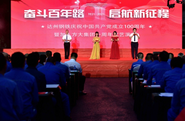 奮斗百年路,啟航新征程。6月20日,達州鋼鐵2020年度創先爭優總結表彰大會、慶祝中國共產黨成立100周年暨加入方大集團一周年文藝晚會成功舉辦。方大集團董事、總裁閆奎興發表講話,達州鋼鐵董事長徐志新致辭。達州鋼鐵總經理謝華強,黨委書記何曉霞等領導以及500余名員工參加本次晚會。
