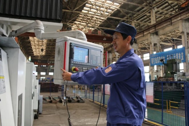 這種工作方式讓老車工沈海東感慨:“以前都是一個人一臺車床,同一時間只能加工一個工件,并且每個工件加工都是靠手來控制,過程中還要不停測量,效率低而且質量有波動?!比缃?,機械分廠引進數控車床替代老式車床后,沈海東只需要把工件吊裝到位,更換好刀具、程序輸入正確后,剩下的就都交給車床了。