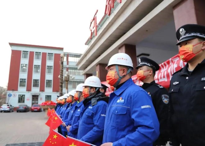 圖為張宣高科舉行冬奧會張家口賽區安保服務人員出征儀式(河鋼集團供圖)