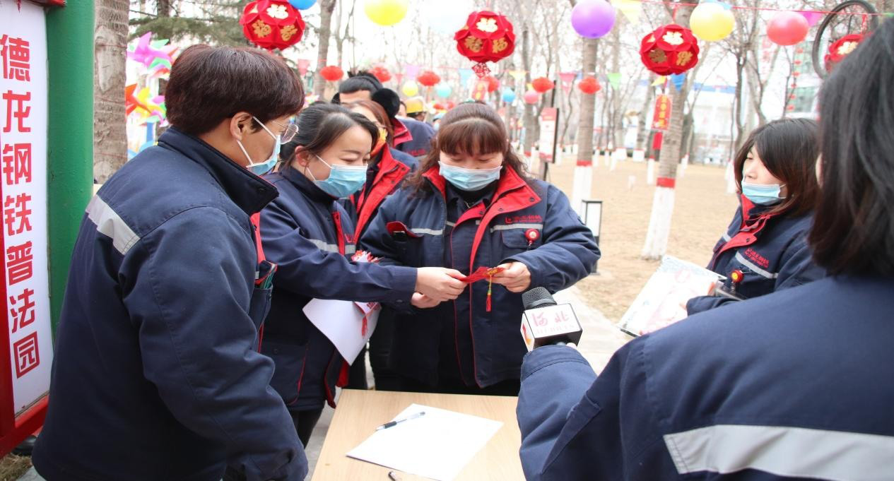 2月15日,正月十五,德龍鋼鐵公司工會在辦公樓廣場、普法園、職工公寓舉行“幸福德龍齊上陣,變革創新鬧元宵”趣味活動,為元宵佳節增添了一抹喜慶的色彩。該公司副總經理郭曉鵬,工會主席、總經理助理肖然到現場參與活動,與職工共度元宵佳節。河北電視臺記者專程來到活動現場,對本次元宵節活動情況進行報道。