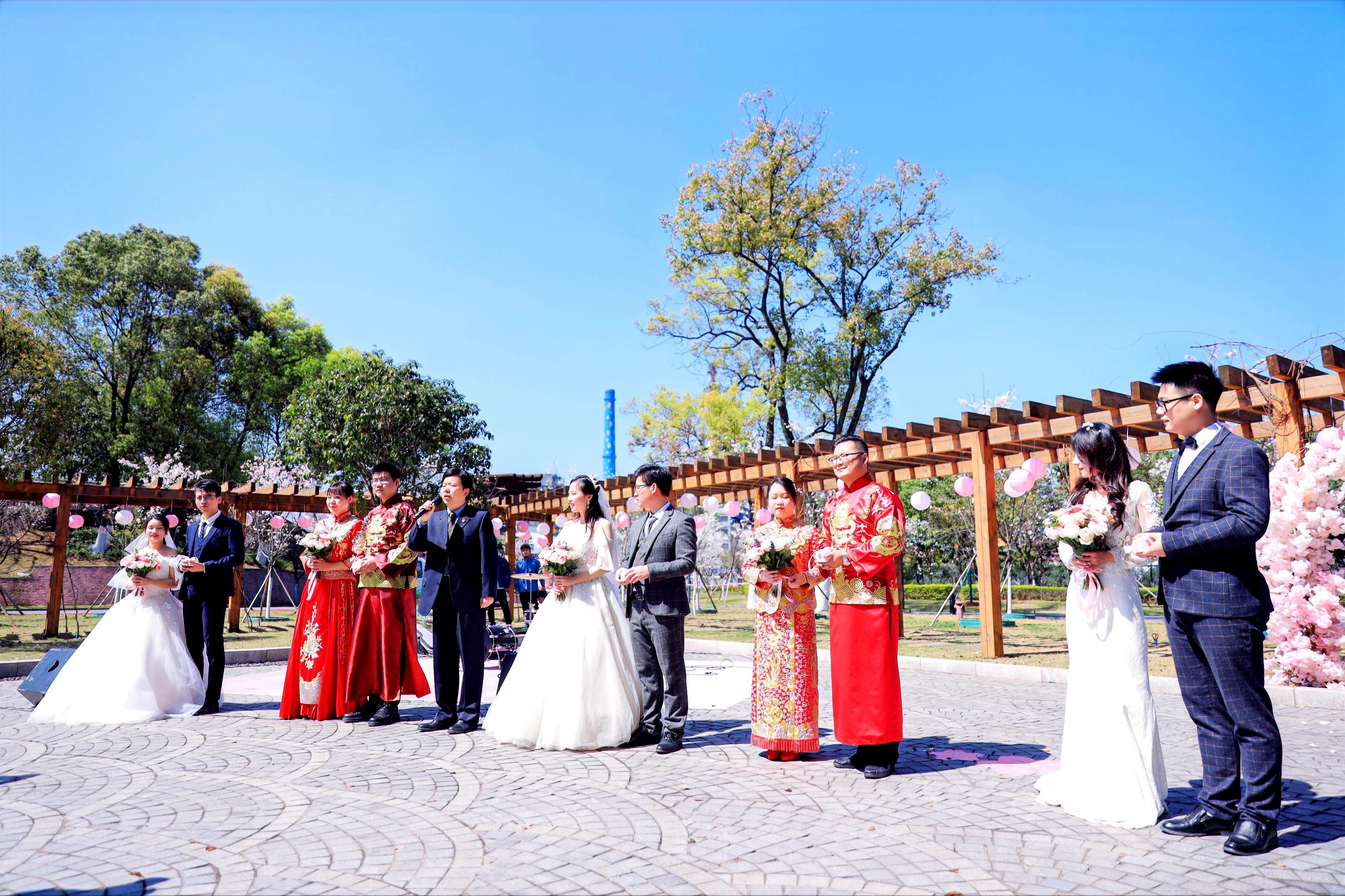 當《今天你要嫁給我》的音樂前奏響起,5對新人從長廊緩緩走出,現場歡呼聲雷動。這是本次主題活動的又一個環節——“櫻”為愛。5對新人分別來自韶鋼松山不同單位,他們都剛剛或即將步入婚姻的殿堂。在領導和親朋好友的見證下,他們手挽手走過幸福的連廊,穿過浪漫的櫻花拱門,成為本次活動中最獨特的一道風景線。婚禮司儀與5對新人進行了現場互動交流,考驗夫妻間的默契度,新人們出其不意的回答引發現場歡笑聲不斷。張啟敏為新人們送上手捧花及神秘驚喜禮物,并為新人們送上誠摯的祝福,希望新人們在今后的生活中,做好事業的“比翼鳥”、生活的“連理枝”,共同擔負起家庭責任,報答父母和長輩的養育之恩,在工作上相互理解、相互學習,以出色的工作來回報企業、領導和朋友的關懷和支持。