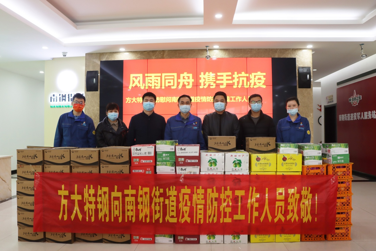 慰問中,胡建忠代表方大特鋼向奮戰在社區防疫一線的工作人員致以崇高的敬意和真摯的問候,對他們堅守崗位、履職盡責、艱苦付出的工作作風表示欽佩,對他們積極協同方大特鋼共同防疫所做出的努力表示感謝。胡建忠表示,疫病無情,人間有愛,作為企業,方大特鋼將一如既往支持南鋼街辦各項工作,積極配合開展相關防疫工作,全力以赴戰勝疫情。