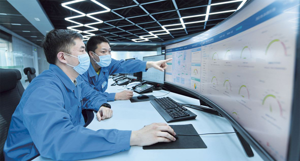 圖為首鋼京唐公司技術(shù)人員正在查看京唐公司安全管理平臺運(yùn)行情況。 (本報(bào)記者 楊立文 攝)