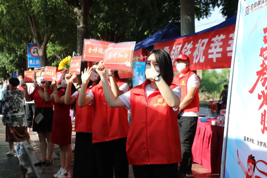 “紅馬甲”一早便到達(dá)考點(diǎn),用心布置,在考點(diǎn)設(shè)置了愛心助考站,向考生提供免費(fèi)的礦泉水、考試文具、口罩等愛心物資,以備考生不時(shí)之需,提前準(zhǔn)備條幅“金鼎鋼鐵集團(tuán)祝莘莘學(xué)子金榜題名”為考生及家長加油鼓氣。