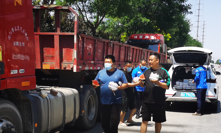 近期,在中石油保供工作中,鳳寶管業汽車發運數量相對前期有所增加,給寶雞鋼管的汽車接卸增加了壓力。該公司西安基地保障分廠物流班在全力以赴優先保證汽車接卸的情況下,以人為本,體恤司機辛勞,為鳳寶管業在外排隊卸車的貨運司機送去了午飯、水及解暑水果,讓大家感受到來自寶雞鋼管的溫暖,共同為中石油做好保供工作。