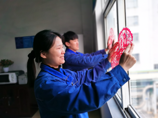 在方大特鋼招待所,工作人員開(kāi)心地將一個(gè)個(gè)紅燈籠、“?!弊值鯄嫅覓煸诖髲d及走道周圍,一派喜慶與紅火,大家品著茶、彈著琴,訴說(shuō)著新年的愿望,一起迎接新年的到來(lái);在焦化廠煉焦車間干熄焦作業(yè)區(qū)乙班,班組成員們用“?!弊执盎?、彩帶裝飾班組,讓小“家”溫馨而喜慶,呈現(xiàn)嶄新的面貌。