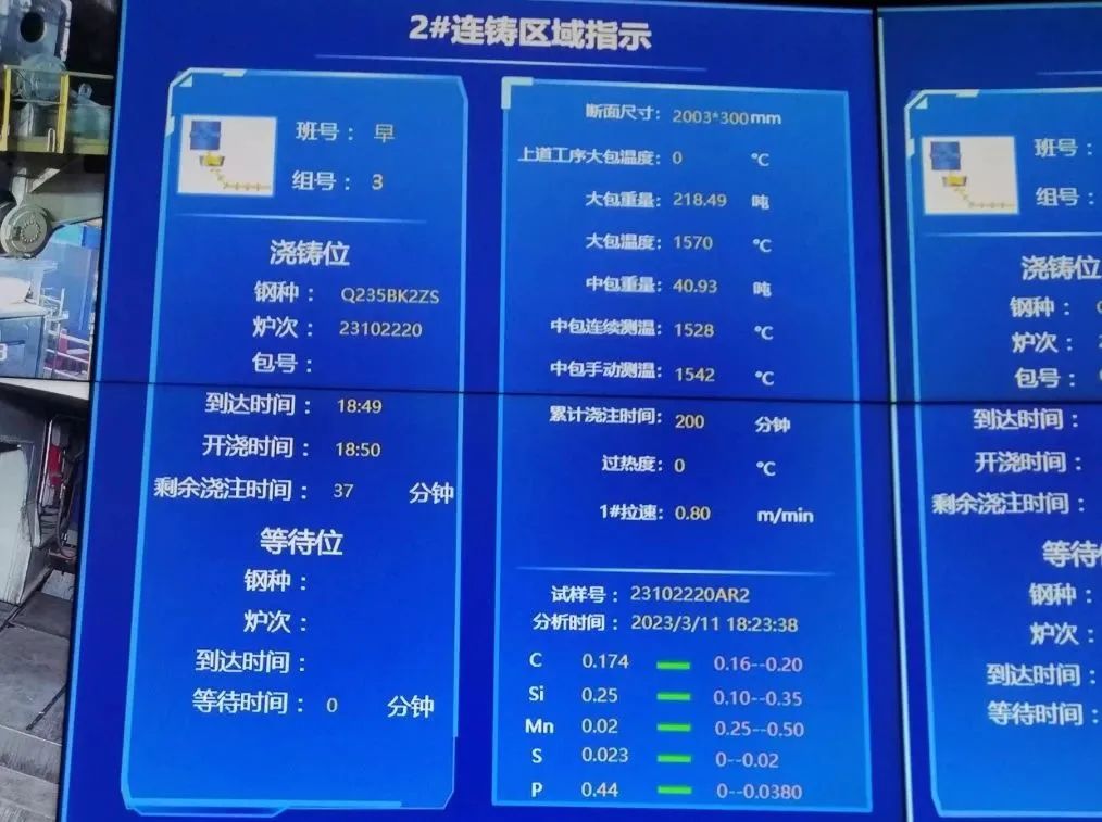 2022年因產(chǎn)品結(jié)構(gòu)調(diào)整,該公司決定將原2#方坯連鑄機(jī)升級(jí)改造為板坯連鑄機(jī),項(xiàng)目于2022年10月建成投產(chǎn),初期主要由現(xiàn)場(chǎng)主控室進(jìn)行控制操作。為了讓操作人員遠(yuǎn)離高危崗位,保護(hù)人身安全,降低勞動(dòng)強(qiáng)度,在制造管理部、設(shè)備管理部、煉鋼廠及寶信軟件等多方努力下,利用系統(tǒng)檢修為契機(jī),引入遠(yuǎn)程澆鋼、智慧澆鋼等一系列新技術(shù)、新設(shè)備,將模型控制系統(tǒng)、二級(jí)生產(chǎn)系統(tǒng)與操業(yè)集控中心區(qū)域進(jìn)行對(duì)接,實(shí)現(xiàn)了操作畫面與現(xiàn)場(chǎng)功能同步。
