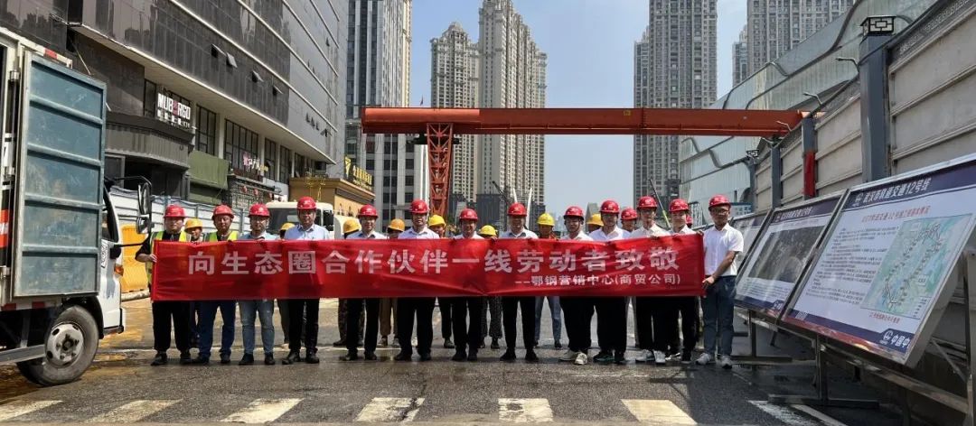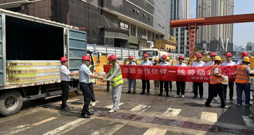8月16日上午,鄂鋼營銷中心趕赴生態圈合作伙伴--中鐵四局集團有限公司武漢地鐵12號線武昌段項目部現場,為炎炎夏日下奮戰在一線的工友們送去防暑降溫物資,為揮汗如雨的工友們帶來絲絲涼意。