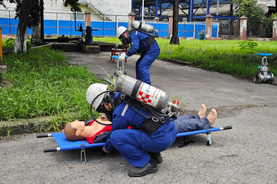 消防安全演練是安全應急或不可缺的重要環節。我們模擬火災現場,學習如何佩戴呼吸器、使用蘇生器、滅火裝置、以此來增強應對緊急情況的能力。這種模擬演練讓大家更深入地理解了應急情況下的決策過程,也提高了我們的快速反應能力。我們以精湛的技能和團隊間的緊密配合參加煉鐵廠的比賽,成功地贏得了比賽的第一名。