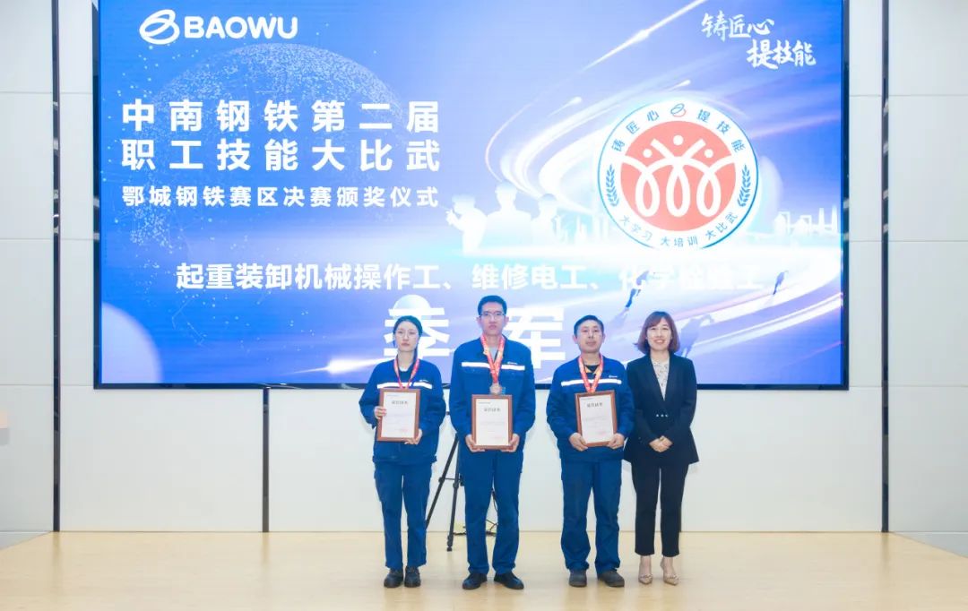 經過兩天緊張激烈地角逐,三個賽項的冠、亞、季軍全部產生后,舉行了頒獎儀式。中南鋼鐵工會主席曠高峰、鄂城鋼鐵工會主席楊藝為獲獎選手頒發獎牌和證書。