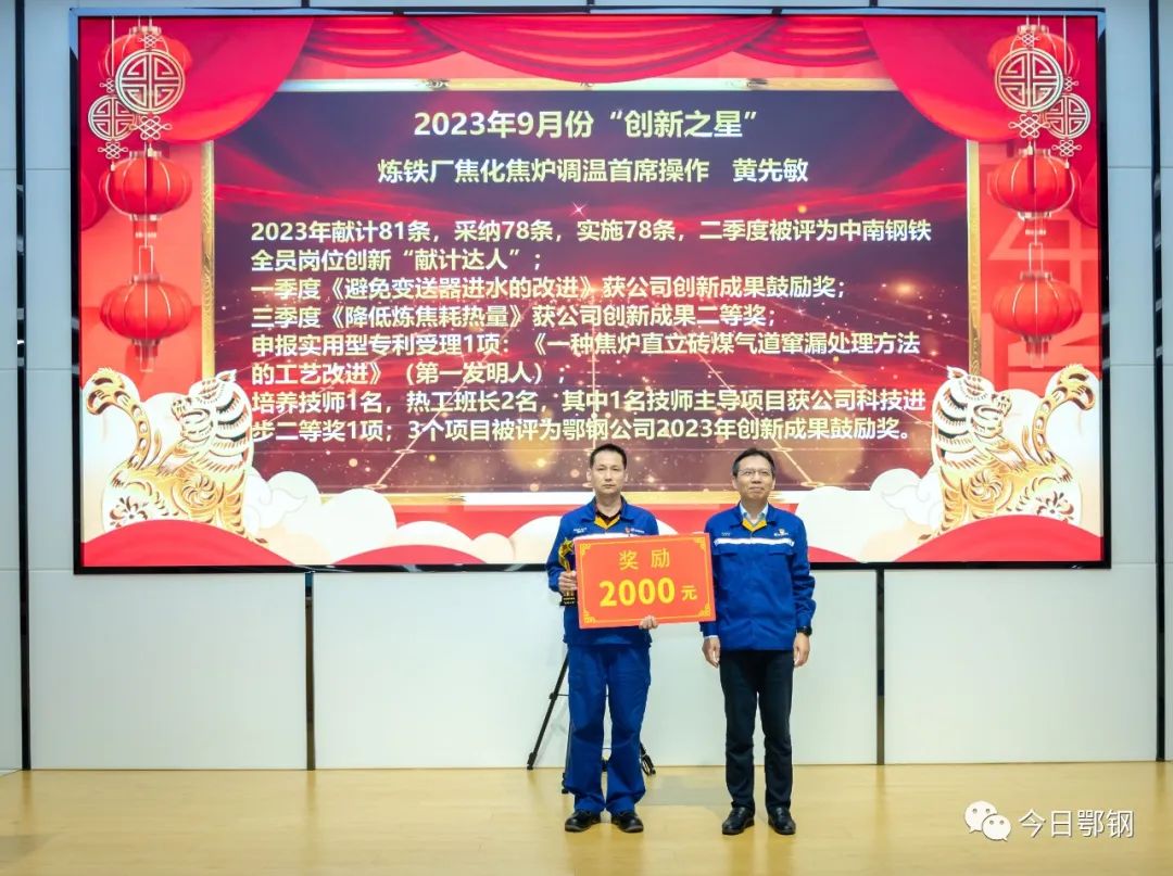 2023年,他獻計81條,采納實施78條,其中兩個獻計項目申報了發明專利,正在受理中。二季度他被中南鋼鐵評為全員崗位創新獻計達人。三季度,他榮獲公司“創新之星”稱號。