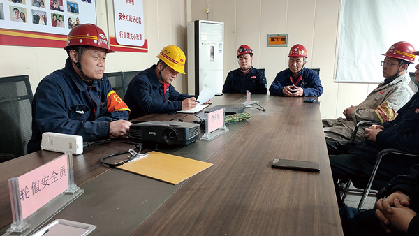 圖為李生正在組織開展班前會。