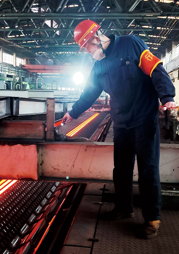 散會后,李生急忙跑到加熱爐了解鋼坯數(shù)量和加溫情況,接著又跑到軋機主控室查看上一個班組的軋鋼參數(shù),同時檢查軋機的孔型和軋槽狀況。等看到收集工序的工作穩(wěn)定推進后,李生又急忙跑到軋機上取樣,到頂鍛房對鋼材樣品進行打頂鍛,觀察鋼材有沒有裂紋和拉絲等異常,并對樣品進行登記和拍照留存。在做好上述這些基礎(chǔ)工作的同時,他還經(jīng)常向周圍人伸出援手,也會見縫插針地去檢查其他工作人員的安全作業(yè)情況。到了晚上21時,他終于坐回了加熱爐主控室的操作臺,吃起了從家里帶來的晚飯。