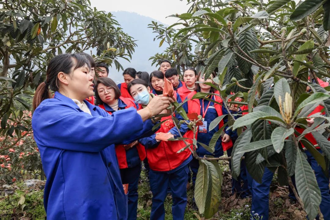 志愿者聽取了果園技術負責人關于梳果工作講解